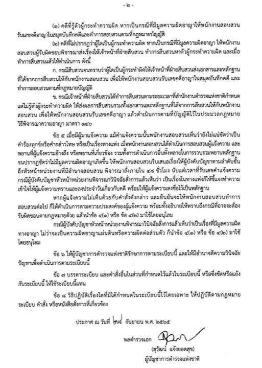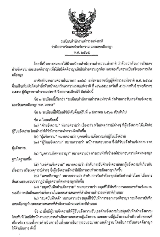 ตามระเบียบสำนักงานตำรวจแห่งชาติ ว่าด้วยการรับเลขคำแจ้งความและเลขคดีอาญา พ.ศ.2565
